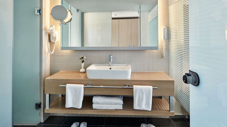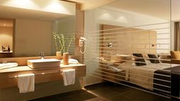 Those arriving by car may park their vehicles in the car park and bicycles can be hired on site.||All smartly appointed hotel rooms are covered in the warmth of earth colours while the glass enclosed bathrooms (with a WC and bath or shower) create a playful atmosphere in the space.