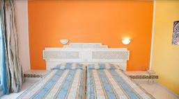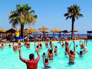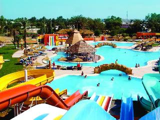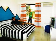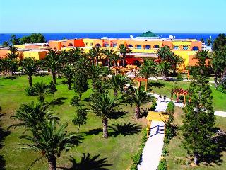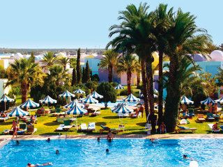 The family-friendly beach hotel is situated 10 km from Sousse, in Monastir, reputed for its exceptional climate and great quality of life. The holiday village is integrated in a 23-hectare area, located along a beautiful beach and surrounded by flower gardens. Habib Bourguiba Airport is just 5 km from the hotel and Carthage Airport is approximately 160 km away.This beautiful complex, fully air-conditioned, has 610 rooms, comprising 3 illuminated units with 314 rooms and 2-storey bungalows typically decorated in Caribbean colours. Guests are welcomed in a lobby with 24-hour reception and check-out services, a hotel safe and currency exchange facilities. Further facilities include a hairdressing salon, 3 amphitheatres, four bars, a Moorish cafe, a games area for children, a children’s playground, kids’ club, TV lounge and a disco and a restaurant. Guests may also make use of the Internet access, laundry service (fees apply) and private parking facilities.Each room features an en suite bathroom, a double bed and a private balcony or terrace. Other in-room amenities include a hairdryer, direct dial telephone, safe, mini fridge, satellite TV and individually regulated air conditioning.