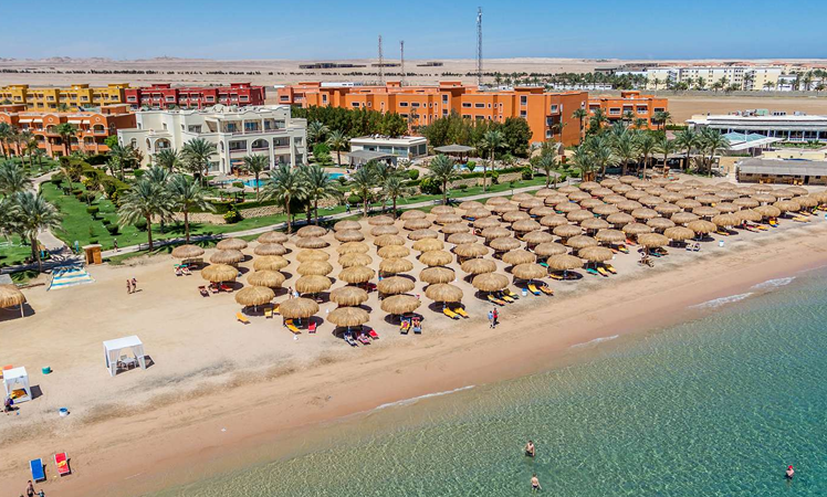 Living up to its exotic name, it’s hard to believe you’re in Hurghada. This hotel instantly transports you to the Caribbean due to its abundance of palm trees, thatched roof cabanas and aptly named bars. While, the reception area is a daylight filled space decorated with plant life and large white columns. This All Inclusive paradise also comes with endless facilities including a jam-packed activity programme, a great choice of dining options and a pick of premium rooms.