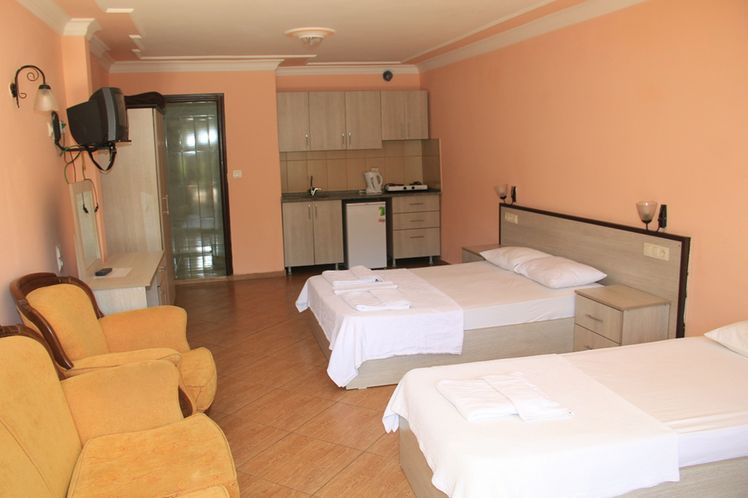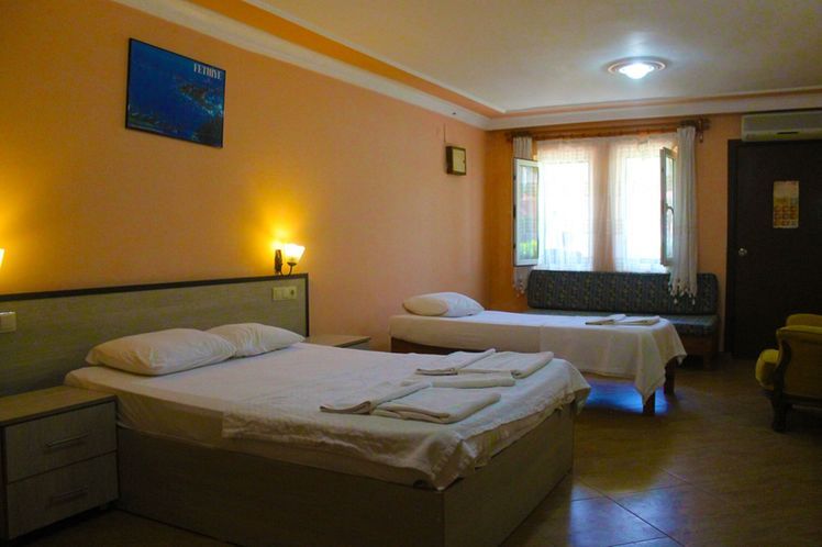 The hotel is just a minutes walk from the beach, shops, restaurants and bars, so you can combine relaxation and fun. Situated 1 km from the center of Oludeniz, 4 km from the beach, 12 km from a marina, 14 km from Fethiye city and 58 km from Dalaman Airport. Facilities and services include restaurant, bar, swimming pool, children’s pool, wireless Internet access, safe at the reception (extra charge) and 24-hour reception.