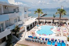 The hotel is approximate 70m from the sea which makes it aesy to all guests to walk down to the beach to relaxa and enjoy the sea. Only 20m away form the hotel are bars, restaurants and clubs for all king of tastes.It is a simple hotel which offers the basic facilities to all guests.The rooms are simple offering standart accomodation facilities and are splited on three floors.The hotel has its own pool with a pool bar available to all guests in order to relax and enjoy a cool drink.