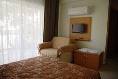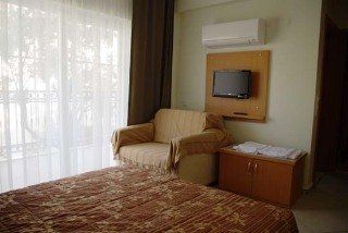This hotel enjoys an idyllic setting in the popular hilltop resort of Hisaronu, between Fethiye and Oludeniz. The Babadag mountain range provides a spectacular backdrop to guests’ stay. It is some 3 kms to the center of Hisaronu, where guests will find restaurants, bars and shops and Oludeniz and its shingle beach is some 8 kms away. It is a 10-minute drive to Fethiye and Dalaman Airport is about 75 kms from the hotel. This attractive, modern, family-friendly hotel comprises a total of 48 rooms including 2 family rooms. Facilities on offer to guests include an indoor and outdoor restaurant. The indoor and outdoor restaurants serve Turkish and European cuisine. Parents will be happy to know that the hotel has a playground.