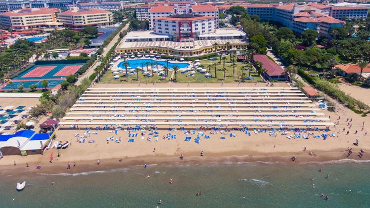 One of the earlier hotels to be built in the area, this beach resort was renovated in 2010 and added an additional building and outdoor pool. Located in Kumkoy, 6 km west along the coast from the historical centre of Side, the hotel has its own section of the beach and offers a wide range of facilities suitable for families. Just a few minutes’ walk from the hotel can be found some shops/bazaar and café bars, and public transport is available allowing easy access to the wonderful centre of Side where the present-day village exists amongst the Hellenistic and Roman ruins of the ancient city.