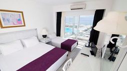 The guest rooms at the Charm Beach Hotel are furnished with every detail in mind and feature a shower cabin, private bathroom, split air-conditioner, satellite TV, phone, tea and coffee corner including a water heater, and minibar with a daily complimentary drink and 1.5 liters of water.
