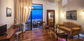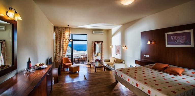Spoiling you with a delightful choice of high-end rooms, there’s no wrong answer when it comes to where to lay your head. Standard rooms come with inland or sea views and usually offer around 25 to 30 square metres of space. Flaunting a desirable cream and white interior with light wooden furnishings and marble floors, style oozes out of this property. Basic amenities include air conditioning, a mini fridge, flat screen TV, safety deposit box and free Wi-Fi.