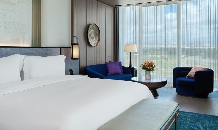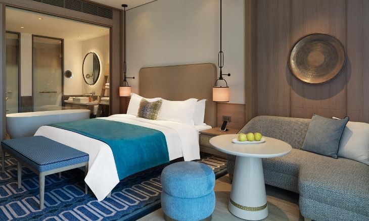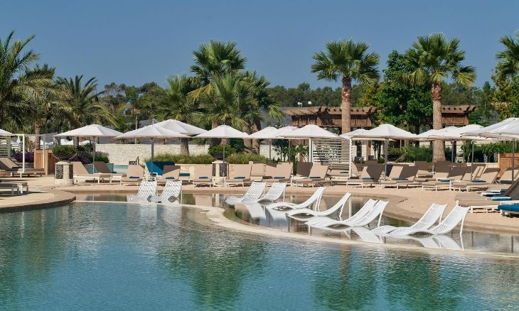 The resort’s dining options are diverse and curated to offer a global gastronomic journey. ANAÏS, a French Gastro Club, presents classic French cuisine with locally sourced ingredients, while Prime Steakhouse serves premium meats from around the world, prepared over a signature Mibrasa grill. For a taste of Asian fusion, Amber Dragon offers a combination of Japanese and Chinese dishes, with an open kitchen and sushi bar adding to the dining experience. Casual options include Aura, an all-day dining restaurant with live cooking stations, and Aqua Bar, which serves poolside favourites from fresh salads to fish and chips. The resort’s bar options range from the sophisticated Cigar Lounge with its exclusive whisky and cigar pairings to The Lounge, where guests can enjoy a relaxed afternoon tea or evening cocktail.