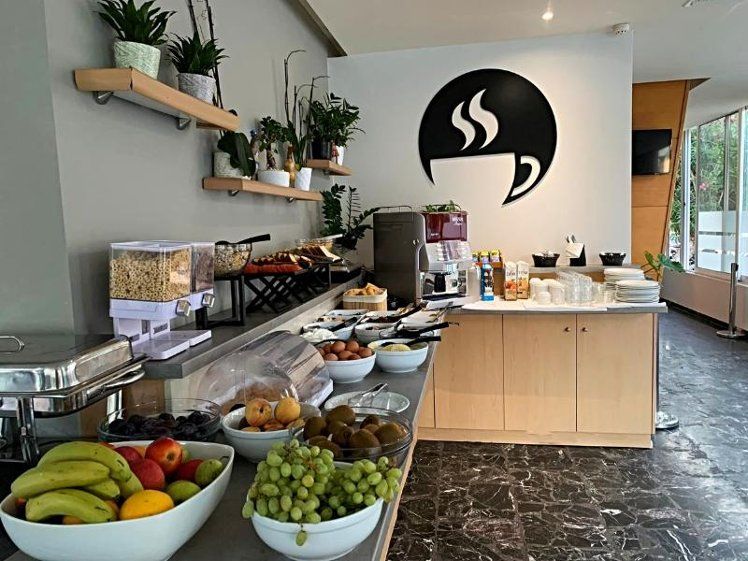 Breakfast : Delicious breakfast buffet, with variety of Greek village products