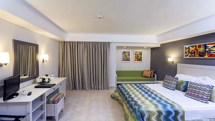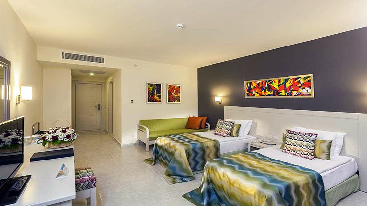 All rooms at Club Asteria Belek come with furnished balconies, comfortable bedding and modern décor. In each room you’ll find a flatscreen TV, free Wi-Fi, air-conditioning, and a mini bar. Each bathroom features a hairdryer, towels, slippers, and premium shower/bath amenities.