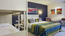 The hotel offers a variety of room types, with accommodation for 1-4 guests. Optional room types include the addition of sofa beds, extra bedrooms, bunkbeds, and garden views.