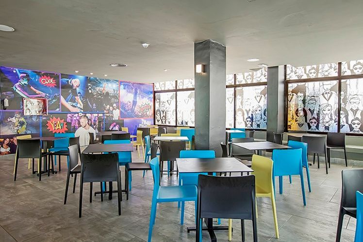 Aparthotel, totally renovated in 2016 with 280 flats surrounded by the spectacular pool and area of parasol/sunbeds, where guests will be able to enjoy parties twice a week with the best entertainment, as drinks and snack by the pool bar. Also, the hotel has buffet restaurant where a varied buffet for the all inclusive guests can enjoy.