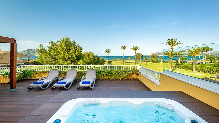 In the vicinity of a stone beach is located the hotel Club Del Sol Aparthotel Resort & Spa. At the beach are sun loungers and sun umbrellas for a fee. The nearest town is Puerto De Pollensa. In the vicinity of the hotel are a number of shopping facilities and a supermarket. The following attractions can be reached from the hotel: Kitesurf school, S and Hidropark. For mobility there is a bus stop , a car rental company and a motorcycle rental.