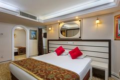 Breakfast (from 07:00 – 10:30) from the buffet. All inclusive: breakfast, lunch and dinner. Breakfast and lunch and dinner only in selected restaurants or bars. Water, soft drinks, coffee & tea, beer, wine and national alcoholic drinks at certain times. Cakes & pastries (10:00 – 16:00), late riser’s breakfast (10:00 – 11:00), midnight snacks (00:00 – 01:00) and free minibar in your room (limited).