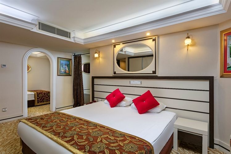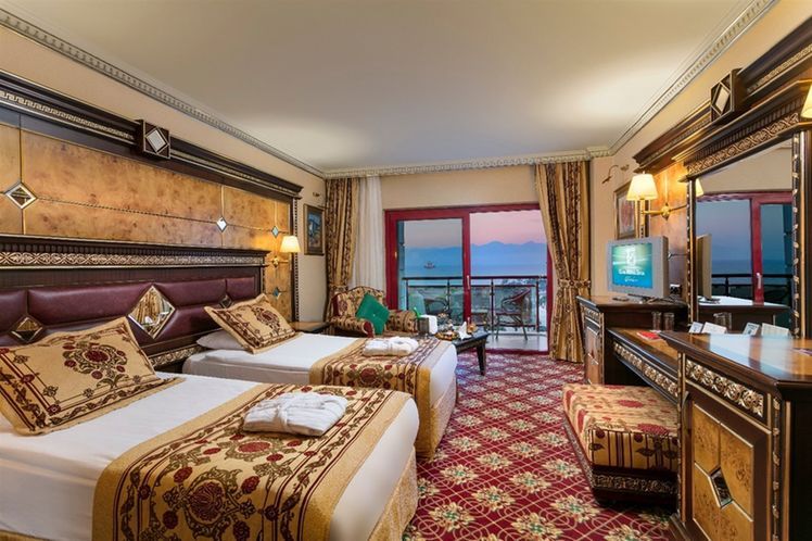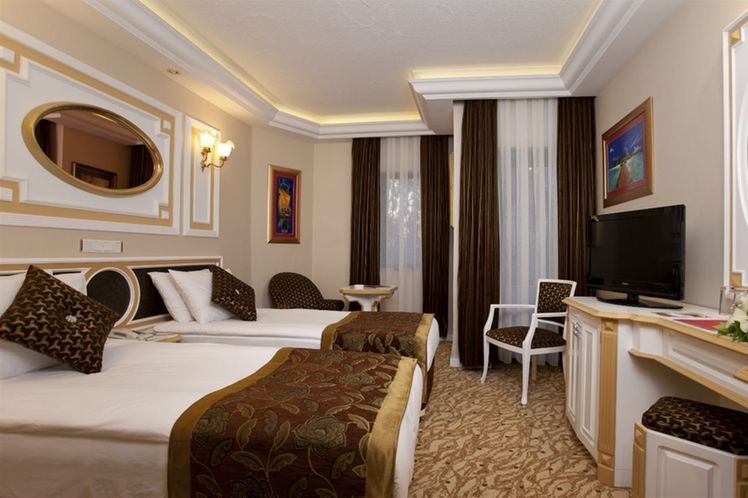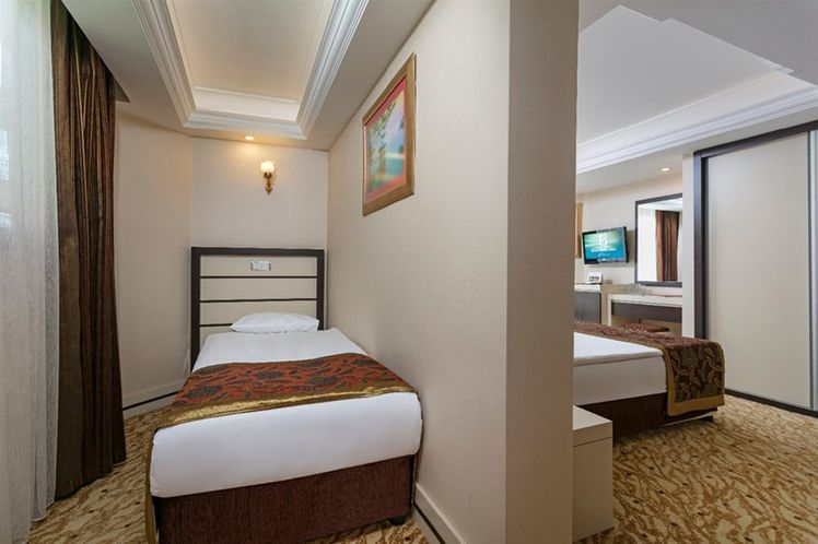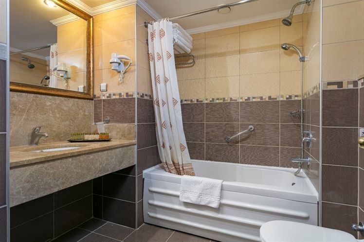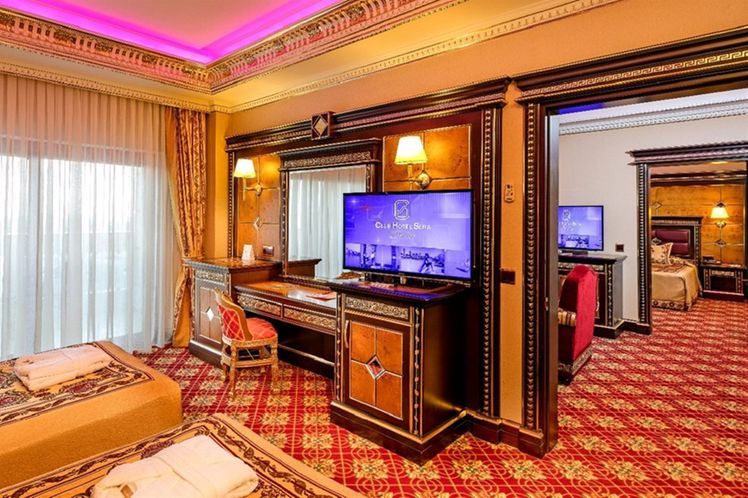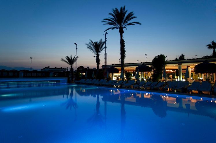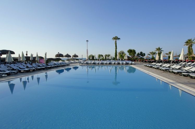 The hotel Club Hotel Sera lies approx. 50 m from a private sandy beach. At the beach are sun loungers and sun umbrellas free of charge available. The town Antalya is around 12 km away. For mobility during your holiday, there are a taxi rank as well as a bus stop in a distance of around 10 m. For medical treatment in emergencies there is a hospital around 1 km away.