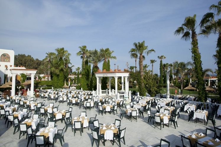 The 13-storey beach hotel has 550 rooms in total. It offers its guests a 24h reception (check-in from 14:00, check-out until 12:00), a lobby with bar, 8 lifts, air conditioning, coiffeur, a mini market, various other shops and discotheque. For the meals, there are three restaurants (air-conditioned). WiFi can be used by hotel guests for a fee. Room cleaning is free of charge. Room service, laundry service and medical service are available for a fee.