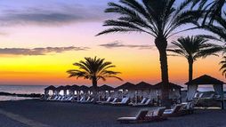 The suites offer a superb range of amenities which include air conditioning and central heating, separate living room area (for most types of suite), deluxe marble bathrooms, flat-screen LCD satellite TV and radio & safety deposit box (complimentary). King Size Bed can be made into twin beds on request), direct dial telephone, free WiFi, ironing facilities, hairdryer, air conditioning (May-Oct), central heating (Apr only), tea & coffee making facilities (replenished daily), fruit, sweets and wine upon arrival, espresso machine, fridge (on request), mini bar (payable locally) Luxury bathroom featuring a bathtub, single washbasin, toilet & shower cubicle with Rain Shower & Flexible Hose Shower, magnifying mirror, scales, bathrobes, slippers and deluxe bathroom toiletries, USB socket, premium wooden effect flooring and The executive one-bedroom suite with sea view offers a Private Cabana on the beach with seating area & sunbeds, wooden flooring and bathtub with Jacuzzi jets.