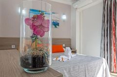 Rooms feature air conditioning (extra charge), T.V, telephone, safe (extra charge), balcony or terrace, hairdryer and bathroom.
