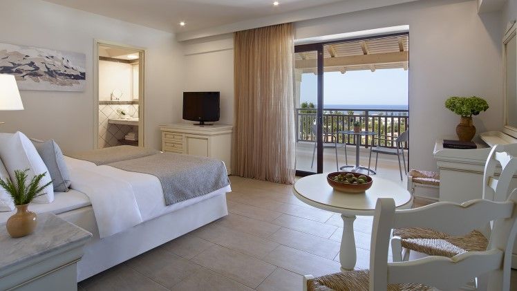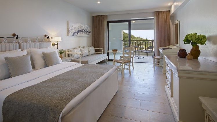 Creta Maris offers a wide selection of accommodations, with 679 rooms and suites alongside a premium private pool villa. Each room features a private terrace or balcony that overlooks serene gardens, scenic mountains, resort pools or the Aegean Sea. The rooms are designed with practicality in mind, providing functional spaces that accommodate families and couples alike, ensuring every guest enjoys a comfortable and pleasant stay.