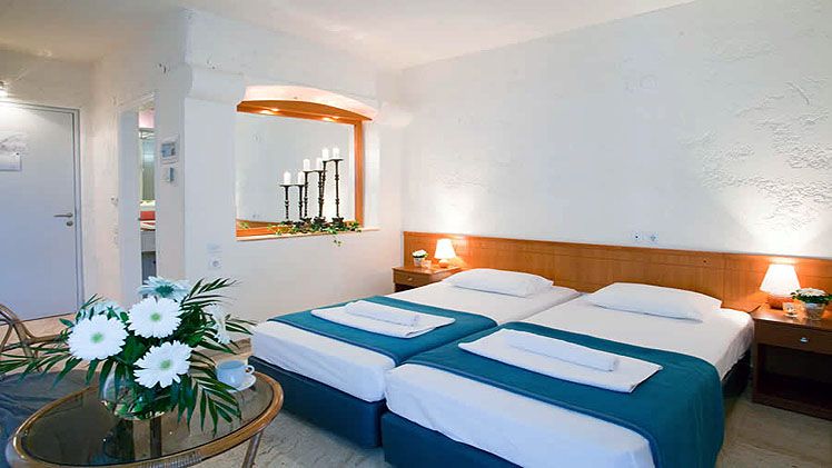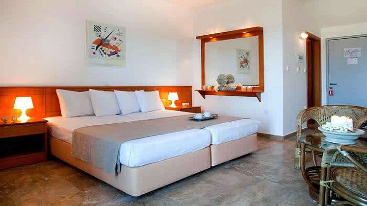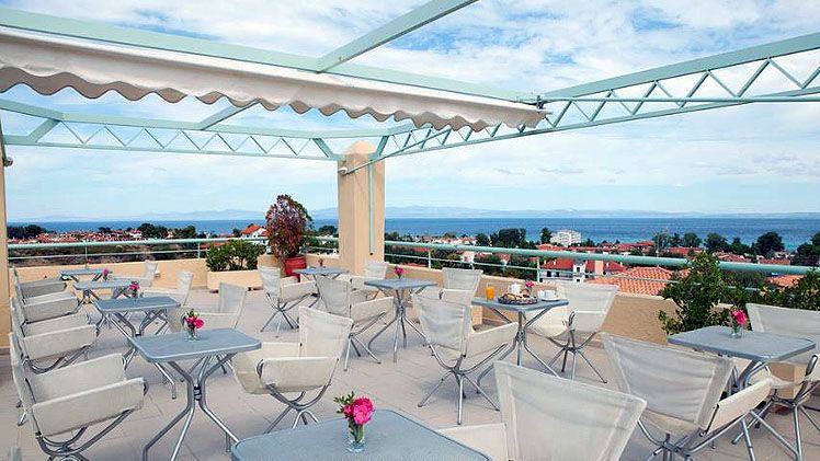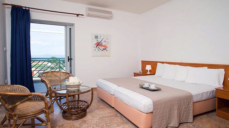 Daphne Holiday Club in Hanioti / Chanioti spread over 2 floors, has 73 rooms and distributed across 12 buildings. The hotel is located 700 m from the sandy and gravel beach. To make your stay more comfortable a reception and air conditioning are available. The staff in this 2 storey hotel speaks English and German. Mobility on holiday is simplified through motorbike and bike rental. The hotel features a fresh water swimming pool, seasonally open. For convenience, refreshing drinks are offered at the pool bar. Sunshades and sunbeds are available for an additional fee at the beach and free of charge at the pool. Distance from the hotel to: airport SKG (100 km). The hotel is within easy reach of bars and restaurants, city centre, bus stops, supermarkets and taxi stands. For your entertainment the hotel features a TV lounge.