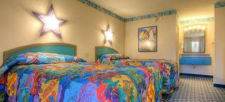 Disney’s All-Star Movies Resort is a Disney Value Resort hotel featuring giant icons that salute classic Disney films – including Disney-Pixar’s Toy Story, Fantasia, The Love Bug, The Mighty Ducks and One Hundred and One Dalmatians. Guest rooms are divided into 5 pairs of 3-story buildings – each pair themed after one of the featured movies. Name changes are not permitted.