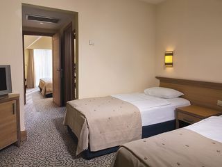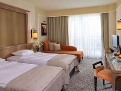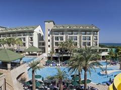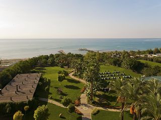 This magnificent hotel is set in the beautiful natural spot in Side, only 55 kilometres from Antalya International Airport. Within a short car ride guests will find the vibrant city centre of Side. Only a few steps from a beautiful sandy beach and crystal clear waters of the Mediterranean Sea, this splendid property is an ideal place for all those who seek complete relaxation in the sun. The hotel rooms enjoy wonderful design and feature land and sea views. The establishment boasts signature restaurants serving traditional Turkish specialities and Italian cuisine while the on-site bars offer a wide selection of beverages in a charming atmosphere. The resort offers services tailored to needs of all publics. The youngest ones will delight in the kids club, entertainment and wide offer of leisure activities. Adults may have relaxing treatments at the on-site spa or have an exhilarating plunge in a sparkling pool. Guests may also avail for versatile meeting facilities.