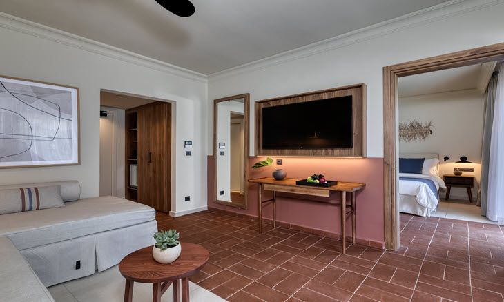 The rooms at Domes Aulūs Zante are designed with comfort and style in mind, featuring a natural colour palette inspired by the surrounding landscape. Offering spacious suites and family units, the accommodation includes all the modern amenities needed for a relaxing stay. Guests can choose from sea-view suites or garden-facing rooms, all equipped with private balconies or terraces, en suite bathrooms, and family-friendly extras such as room service with dedicated children’s menus.