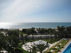The family-friendly beach hotel is situated 4 km from the Medina of Hammamet North.The air-conditioned hotel stands on 4 hectares of land in front of a beautiful sandy beach and is surrounded by the legendary jasmine and orange trees, which inspire the sweetness of life. Completely renovated between 2005 and 2008, the 220 contemporary rooms have been designed for guests’ comfort and convenience. The beach hotel also offers 2 restaurants and 2 bars as well as a games room, children’s playground and a car park. Guests are welcomed in a lobby with 24-hour reception and check-out services, a hotel safe and currency exchange facilities. Room service and a laundry service are also provided for additional fees.Each room features an en suite bathroom with a shower and a hairdryer. Amenities include a direct dial telephone, TV, safe, air conditioning and a private balcony or terrace.The hotel offers a wide choice of leisure activities, including sports, craft courses and entertainment at night. There are indoor and outdoor swimming pools and guests may relax in the hot tub or steam room, or with a massage. Sun loungers and parasols are provided on the beach. The hotel is around 8 km from 2 golf courses in Hammamet. The hotel’s beach restaurant serves Mediterranean specialities. The hotel offers all-inclusive packages, with buffets for breakfast, lunch and dinner. A la carte options are also available for lunch and dinner.
