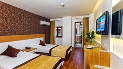 Recently renovated in 2012, the charming hotel consists of a main building and 3 adjoining buildings, and has 222 rooms in total. It is equipped with a 24h reception (check-in from 14:00, check-out until 12:00), a lobby with bar, 6 lifts, an air conditioning, a coiffeur, a shop as well as a money changing facility. WiFi is available for free. Room cleaning is free of charge. Medical service is available for a fee.