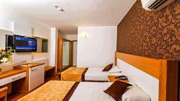 The hotel Eftalia Downtown Hotel is around 13 km from Mahmutlar (Antalya around 135 km). A sandy / shingle beach is around 40 m from the hotel. At the beach, there are sun loungers and sun umbrellas for a fee available. The following attractions can be reached from the hotel: Alanya Castle (approx. 5 km away). For mobility there is a car rental company. The airport (AYT) is approx. 124 km away. Another airport (GZP) is located approx. 43 km away.