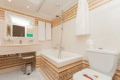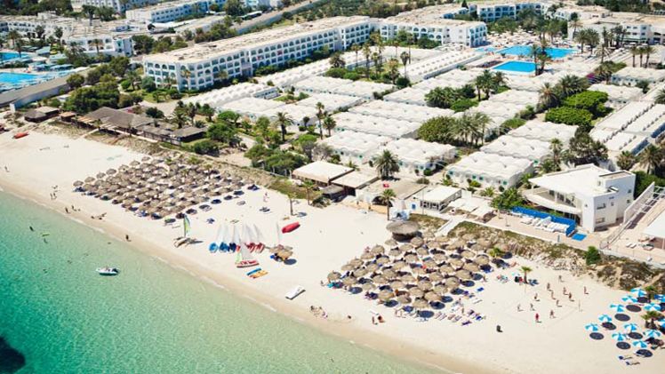 Situated alongside a beautiful beach of fine sand in the heart of the resort of Port el Kantaoui ,El Mouradi Club Kantaoui is just 2 km away from a 36-hole golf course, 10 km from the city of Sousse, 35 km from the Habib- Bourguiba Monastir Airport and 40 km from Enfidha airport.El Mouradi Club Kantaoui offers double rooms, superior rooms and bungalows sleeping 2, 3 and 4 people. All rooms are air-conditioned, most of them have terrace or balcony in addition to a fully fitted bathroom, telephone, satellite TV, wifi connection (partial) and mini fridge.The hotel has 2 outdoor swimming pools with 2 children’s pools and an indoor swimming pool with 2 Jacuzzis and children’s pool. The hotel facilities include 5 tennis courts (rackets incur deposit and lighting with additional fees), archery, bocce, darts, table tennis, mini golf, playground, beach volleyball, pedal boat, kayak, caravel, sail boat, water polo, warm-ups, dance classes, aerobics, shuffle board, aqua-gym, a kids’ club(5-12 years) and a club for teenagers (13-17 years). Evening entertainment program: a mini disco, folklore and fakir, variety shows, live music, evening entertainment involving guests’ participation and play back performance.Included Services:• Safety box• TV Remote Control• Mini fridge• Baby Cot• Non-motorized water sports (pedal boat, kayak, caravel and sail boat) are subject to availability.• Indoor swimming pool (open from November to April)• Beach & Pool umbrellas• Beach & Pool Sun beds• Beach & Pool Towels (deposit)• Various TV Channels• WIFI connectionServices with Extra charge:• Nursery• Infirmary• Laundry• Drinks at disco• International Alcoholic Drinks• The Safe rental is 2dt / day• The beach and pool mattress rental is 2 dt / day.• motorized water sports• Tennis Courts’ lighting (payable).• Telephone calls• Access to the gym• Mattresses (pool and beach)• Hookah• Beach Party• Billiards• Play room