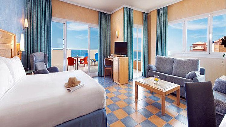 From twins to doubles and suites alongside family stays, these traditionally styled rooms will have you feeling at home in no time. As standard guests can enjoy perks such as air conditioning, Wi-Fi and a private balcony. Floral curtains and tiled floors offer that authentic Spanish vibe, while the LED TV caters to those modern needs.