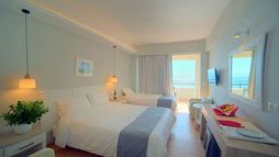 Completely renovated in 2017, the 3-storey beach hotel has 216 rooms in total. It offers its guests a 24h reception, a lobby with bar, 4 lifts, air conditioning, a safe (for a fee), kiosk and a free parking area. For the meals, there is a restaurant (air-conditioned). You will be warmly welcomed in both the hotel’s bars. WiFi is available for free. For guests dependent on a wheelchair the hotel has a number of wheelchair accessible bathrooms. Room cleaning is free of charge. Laundry / ironing service is available for a fee.