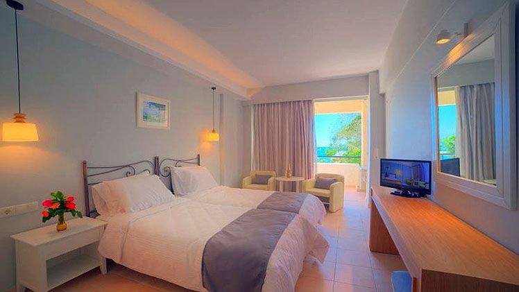 In the vicinity of a sandy beach is situated the hotel Elea Beach. At the beach, there are sun loungers and sun umbrellas for a fee available. The nearest town is Corfu. A supermarket is in the vicinity of the hotel. In the evening, you can go dancing in a nightclub in the hotel’s surroundings. The following attractions can be reached from the hotel: Mouse Island, Old Fortress and Archeological Museum. For mobility there is a taxi rank, a bus stop, a car rental company and a motorcycle rental. The hotel and airport are linked by a shuttle (for a fee).