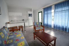 This complex is located in Puerto del Carmen in the southern central part of the island of Lanzarote, only 50 m from the beautiful, long sandy beach. The capital of the island, Arrecife, is only a 15-minute drive away. Guests will find links to the public transport network within 50 m of the complex and it is only a 10-minute drive from the airport. Renovated in 2006, this apartment hotel comprises a total of 58 units divided in 2 blocks separated by a quiet road. This family-friendly establishment offers guests a lobby area, a currency exchange facility, a bar and Internet access. The apartments are equipped with a double bedroom, a living room/kitchenette with a fridge, a bathroom with a shower or bathtub and either a balcony or a patio. The complex features a swimming pool surrounded by a sun terrace as well as a separate pool for children and a snack bar serving refreshments.