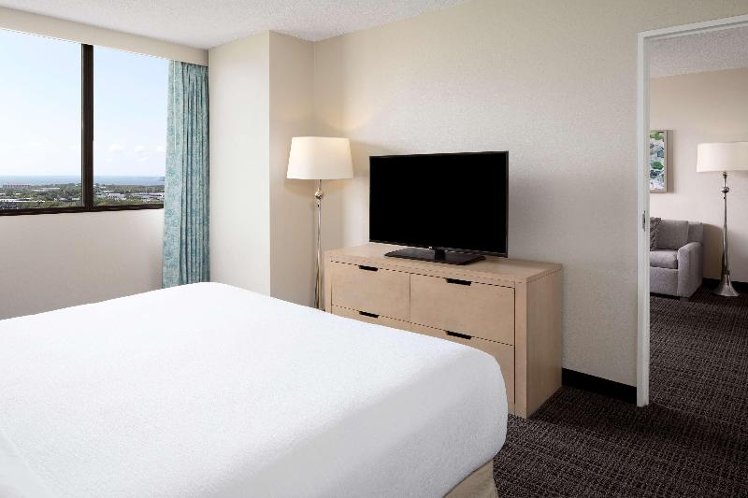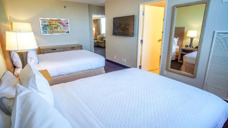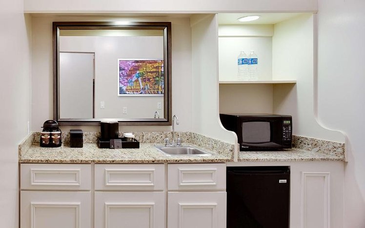 Experience the largest hotel guest rooms in Tampa, boasting 715 sq. ft. of space. Our spacious two-room suites offer a separate living room, bedroom, and kitchenette equipped with a microwave and mini-fridge. Enjoy the comfort of newly installed carpet, mattresses, and pillows, upgraded as of December 2018. Located in the heart of Westshore, near Tampa Bay's best shopping and just minutes from Tampa International Airport and downtown, our hotel is ideally situated for both business and leisure. Explore nearby attractions such as Busch Gardens, relax on the beach, attend events at the Tampa Convention Center, or cheer on your favorite sports teams. While some amenities have reduced service or are currently unavailable, including the fitness center, pool, and on-site restaurant, we strive to provide a comfortable stay. Over 70 restaurants are within a 2-mile radius.