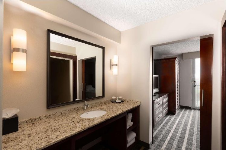 The following services and amenities are available, but with reduced service: Breakfast. The following services and amenities are currently not available: Airport Shuttle, Complimentary Evening Social, Fitness Center, On-site Restaurant(s), Pool, Room Service, Spa. Enjoy spacious accommodations in the all-suite Embassy Suites San Francisco Airport - Waterfront hotel that includes a free made to order breakfast. Conveniently located in Burlingame, just 3 miles to San Francisco International Airport and 15 miles to downtown San Francisco, our hotel on the San Francisco Bay boasts amazing waterfront views. Expect complimentary airport shuttle, complimentary drinks and snacks at our Evening Reception*, and free WiFi for Hilton HHonors members. The shuttle runs to BART (Bay Area Rapid Transit) which offers links to downtown San Francisco. In addition, we provide a modern exercise facility and an indoor pool. Work or rest in our tropical atrium and experience our on-site restaurant and bar, Tap and Tavern. *Service of alcohol subject to state and local laws. Must be of legal drinking age.