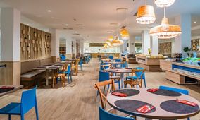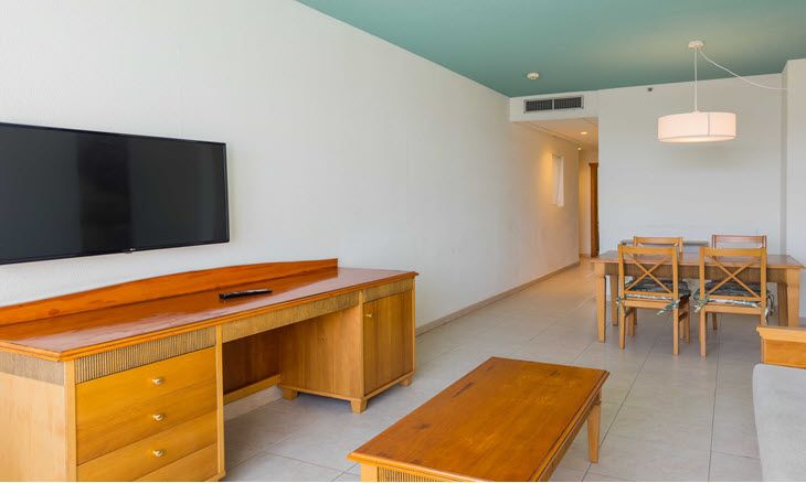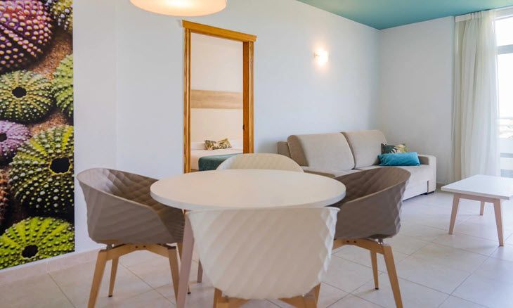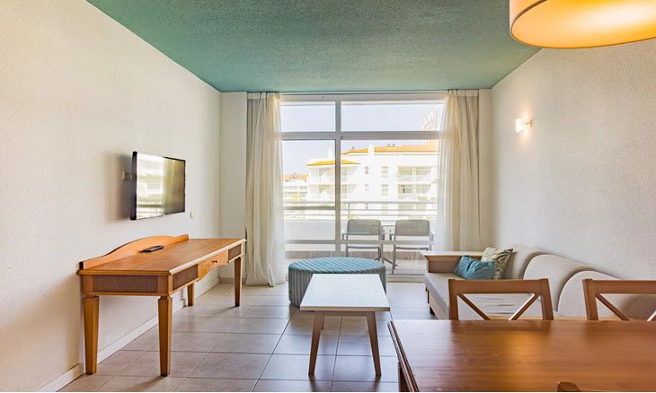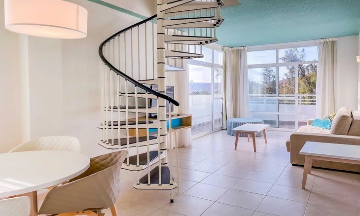 It is a modern hotel, with accommodation facilities such as double suites, and double duplex penthouses. There are suites with the poolside view and others towards the Golf Course area, with spectacular and amazing views of the sunrises and sunsets on the immensity of the Atlantic Sea