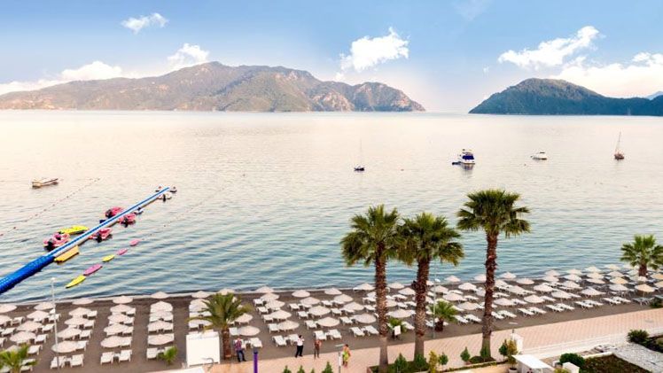 The Golden Rock Beach Hotel is a newly built 5 star hotel for 2012, and rests between the resorts of Marmaris and Icmeler, just 3 km from the centre of Marmaris and 5 km from Icmeler. Offering pristine accommodation and a great range of facilities and amenities on an All Inclusive basis, this superb vacation retreat makes a comfortable base for couples and families, with the beach just in front of the hotel and close to a variety of shops and restaurants. Guests to the Golden Rock Beach Hotel are close to the local Dolmus or bus service and can discover marvellous beaches, explore historical areas, and experience real Turkish hospitality.