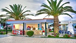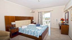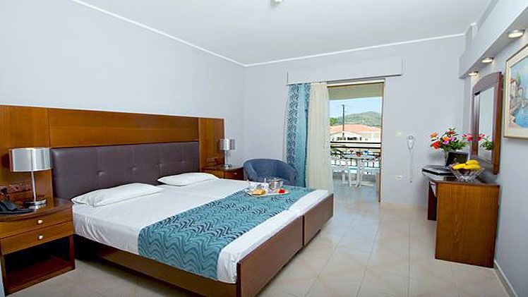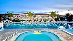 This hotel is located in Kalamaki village, which is situated along the beach near Laganas and is only 6 km from Zakynthos Town. Kalamaki’s fine sandy beach can be found 150 m away and is often visited by the famous Caretta-Caretta sea turtles which breed ever year here, making it one of the island’s main resorts. Zakynthos International Airport is about 3 km away from the hotel.Built in 2011, this is a modern, air-conditioned, family-friendly beach hotel that comprises a total of 142 rooms and is surrounded by well-attended gardens. Guests are welcomed in the elegant, comfortable hotel lounge where they can check in at the 24-hour reception, which offers a 24-hour check-out service.