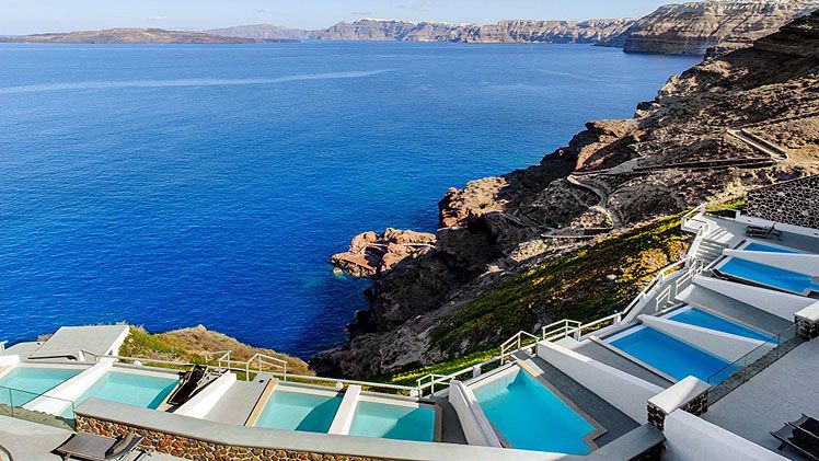 The Grand Ambassador Santorini has only 40 vaulted elegant rooms, suites and villas in total each boasting its private pool and spa.