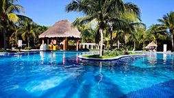 This exclusive beach hotel is located amidst tropical vegetation and beside a sandy beach on the Mayan Riviera with a protected coral reef. The centre of Akumal is some 3.5 km away and offers a range of shops, numerous restaurants and entertainment venues. The tourist area of Tulum is 15 km from the hotel. This modern complex provides a total of 1080 junior suites and is affiliated with 3 luxury hotels, all built by the famous Mexican architect Fernando Quiriarte and inspired by the Puuc Maya period. Facilities available to guests include 6 bars, 6 restaurants, a nightclub, and a theatre. Corporate travellers can make use of the conference facilities and guests who wish to explore the area can take advantage of the bicycle hire service.