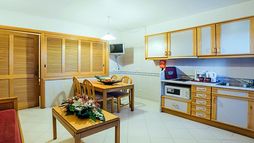 All of the apartments of this modern hotel come fully furnished and well equipped with en suite kitchenette with all the necessary utensils, air conditioning, coffee/tea maker, cable tv, telephone, free cribs/infant beds (on request), hairdryer and furnished balcony to relax and enjoy a drink.