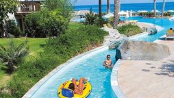 In the main town of Kos, tourists will find a mixture of architectural styles, from Byzantine churches to Turkish minarets and mosques and more recent buildings demonstrating an Italian influence. Many of the archaeological sites overlook sandy beaches and offer breathtaking views over the Mediterranean. This beach hotel and resort is 6.5 km from the centre of Kos and 8 km from the Asclipion ancient monument.Built in 2002, this hotel consists of a main building and village-style bungalows, all of which overlook an idyllic beach and the crystal waters of the Aegean Sea. The resort contains a lobby with a 24-hour reception desk, impressive lounges and outdoor terraces and the hotel offers a wide range of facilities for families. Amenities include a hotel safe, lift access, a café and bar, several restaurants, one of which is surrounded by a lagoon, a hairdressing salon, Internet access (charges apply), room service (charges apply), as well as a car park, a kids club and a play area.The hotel has a total of 384 rooms and guests have a choice of one or two-bedroom bungalows or rooms. Bungalows are comfortable and spacious with a combined bathroom and sitting area. The bedroom is fully equipped and the sitting area has relaxing lounge facilities. There is also a selection of rooms available with connecting doors. Double rooms are en suite with marble bathrooms. Family rooms have a garden view and satellite TV, a direct dial telephone, individual air-conditioning, a safe and a refrigerator. The maximum number of guests in family rooms is two adults and two children. Rooms also have balconies and terraces, minibars and hairdryers.