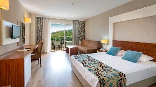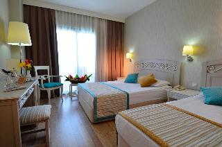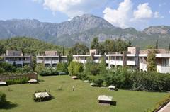 This pleasantly appointed hotel is situated below the Taurus Mountains in the district of Göynük, only 180m from a wonderful shingle beach and about 7 km from the centre of Kemer and its countless shops and entertainment venues. Refurbished at the end of 2011, this elegant, air-conditioned hotel consists of a main building, an annexe and 9 bungalow-type buildings, comprising a total of 265 rooms. The hotel features an attractive garden area with 2 pools and a shaded garden bar. Complimentary Wi-Fi use is available in the lobby area and organized animation is provided.