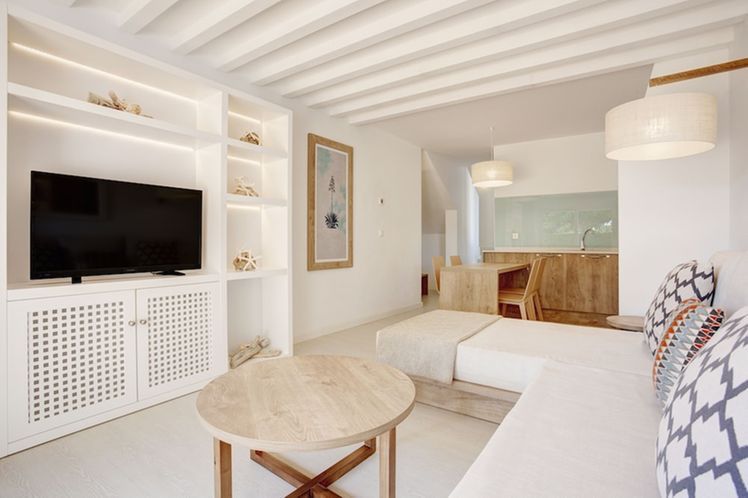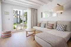 Grupotel Aldea Cala’n Bosch is a modern beachfront apartment complex designed for families seeking comfort and coastal scenery. Completely refurbished, the hotel blends Mediterranean charm with contemporary design, offering guests spacious accommodation surrounded by natural beauty. With its prime position overlooking the Mediterranean and direct access to the coastline, it provides an excellent base for a relaxing holiday. The hotel’s two swimming pools, beautiful gardens, and sea views create a peaceful setting ideal for unwinding and spending quality time together.