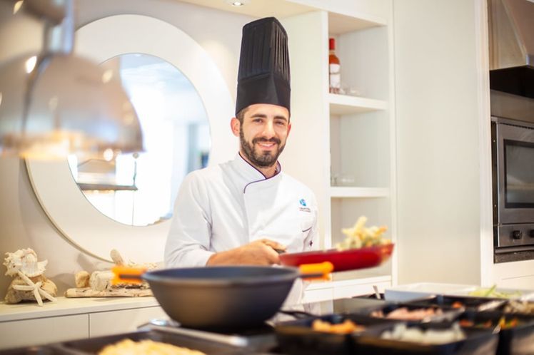 The hotel’s main buffet restaurant serves a wide selection of Mediterranean dishes for breakfast and dinner, complemented by a live show cooking station. The Pool Bar offers a variety of light meals, appetisers, salads and pastas during the day, allowing guests to dine al fresco by the water’s edge. In the evening, the Lounge Bar provides an inviting setting to enjoy cocktails or soft drinks while relaxing under the warm Minorcan sky.