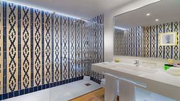 Velvet Bar: Complete with a terrace offering direct access to the pool, this low-key drinking spot promises sophisticated beverages with its choice of swanky seating and decorative wall motifs. Mood lighting sets the tone for the evening, while the illuminated bar showcases its top-shelf spirits.