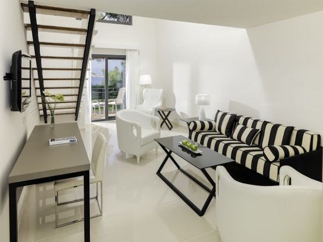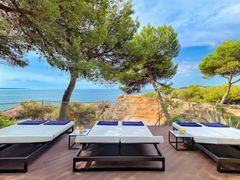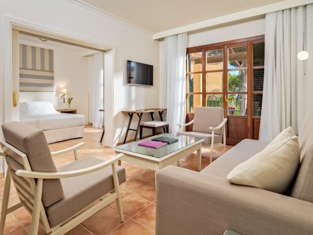 Sport, games and activities: 2 outdoor swimming pools, sun terraces with loungers and parasols, and a Despacio Beauty Centre includes heated indoor pool, gymnasium, Turkish bath, sauna, Jacuzzi and massage, therapy and beauty treatments indoors or in the garden (possible fee). There are several quality golf courses nearby and the hotel arranges special packages and green fees. You can easy access to 2 secluded coves and beaches from the hotel.