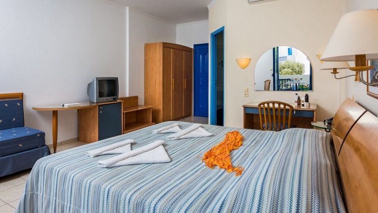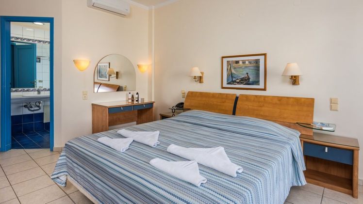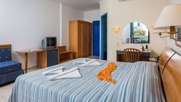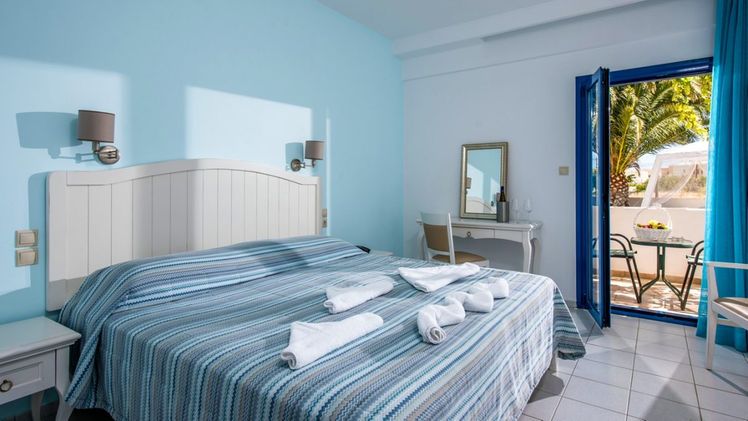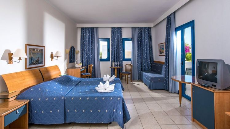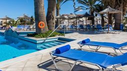 Hara Ilios Village offers a variety of facilities designed to enhance guests’ comfort and enjoyment. The extensive gardens filled with palm and olive trees provide a serene environment, while the large swimming pool and children’s pool offer refreshing spots for relaxation. Additional amenities include sunbeds and umbrellas, free parking, and a sandy beach just 150 meters away. The hotel also offers high-speed internet access, room service, and a range of additional services such as car rentals, excursions, and private dining.