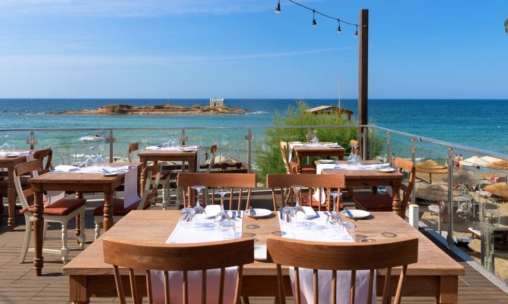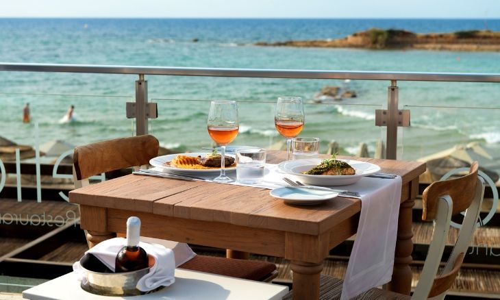 High Beach White offers an array of dining venues that cater to various tastes, with a focus on Greek and international cuisine made from local ingredients. The on-site “Elia” à la carte restaurant is ideal for refined meals served on the beachfront, while the “Estia” self-service buffet provides a variety of nutritious options. Guests can also enjoy drinks at the seaside all-day bar or unwind at the “Sunset” rooftop cocktails bar with panoramic sea views.