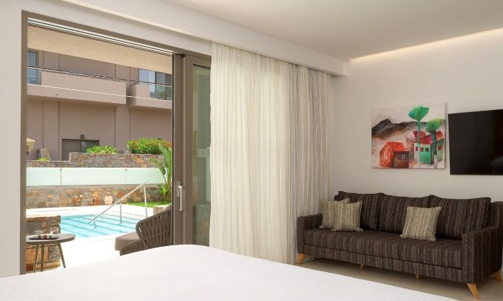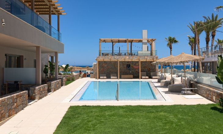 Situated on the sandy, Blue Flag-awarded beach of Malia, the hotel enjoys an enviable position with direct access to the sea and a short stroll to local shops, restaurants, and bars. The resort is conveniently positioned within walking distance of the traditional village of Malia and is just a short drive from Nikos Kazantzakis International Airport, ensuring excellent connectivity while maintaining a tranquil holiday ambience.